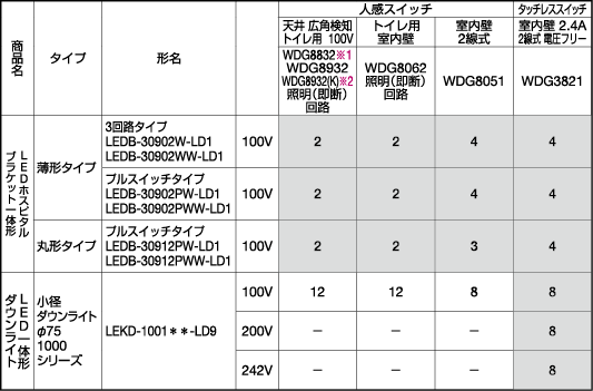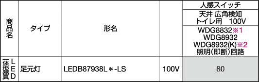 | 892 | LEDB88926(S)、LEDB88926(K)、LEDB88925(S)、LEDB88925(K) | スペック | 記載なし | ◆壁付けの場合は取り付け、向きがあります。 |