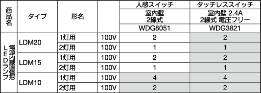 | 器具本体形名の列の非調光タイプのマス | ||||