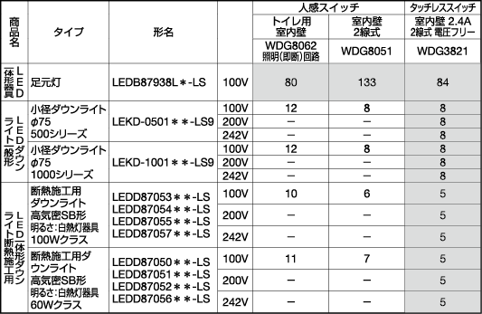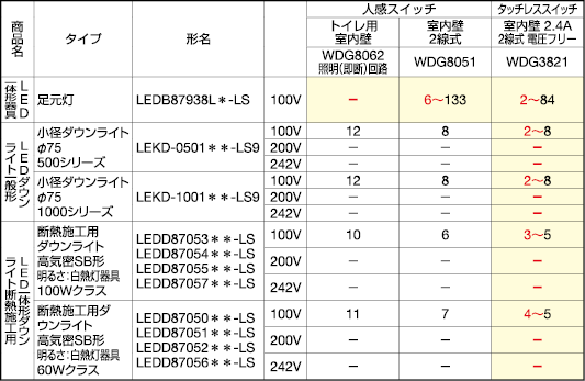 | A67 | LED器具制御機器接続台数表 | 人感スイッチ、タッチレススイッチとの接続台数 訂正 | ![]() |