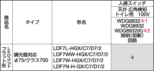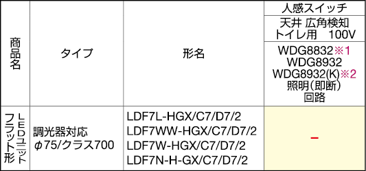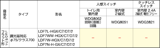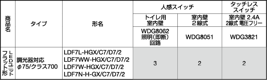 ランプ別売表 LDF6W-WGX/C7/7/2 |