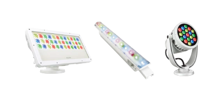 当社ブースでは、地域自治体の皆さまの課題を解決する商品として、夜間の地域活性化に貢献する「フルカラーLED演出照明」を展示いたしました。