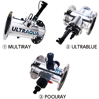 (①MULTIRAY、②ULTRABLUE、③POOLRAY)