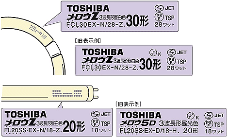 注)環形蛍光ランプ等には20形、30形、32形、40形等の表示がありますので、この表示を確認して同じワット形のものをおもとめください。